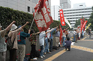 そしてこの弾圧に加担した国労本部、チャレンジ一派や反動革同どもは、9・13〜14国労大会に向けて、闘争団を除名し切り捨て、全国単一体の国労組織を解体し、JR連合へとなだれ込もうとしている。これを粉砕するために、裏切り者の執行部を打倒し、闘う執行部を確立しなければならない。7月代議員選に勝利し、なんとしても革命的な代議員団を形成しよう。