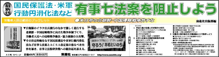 小泉政権は、泥沼化を深めるイラク侵略戦争にのめり込み、有事関連法案を今国会で成立させ、北朝鮮侵略戦争への突入を狙っている。首切り、賃下げ、不安定雇用化の資本攻勢を強め、労働者を一層の無権利状態にたたき込もうと攻撃を強めている。