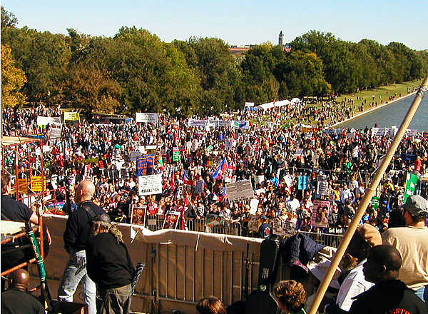 MWMを呼びかけたILWU(国際港湾倉庫労働組合)ローカル10は組合員数1200人の労働組合である。その呼びかけのもとに、日本で言えば自治労、日教組、全逓、都市交にあたる労組が、さらに通信・自動車・電機・運輸・サービスなどの各種民間組合が数多く賛同し、その傘下の労働者数は350万人に上った。そして多種多様な運動団体や著名な個人などが賛同した。米帝ブッシュの戦時下の弾圧体制を打ち破って、ワシントンDCのリンカーン記念館前に全国各地から結集した1万5千人の労働者人民はまさにそれらの代表であった。