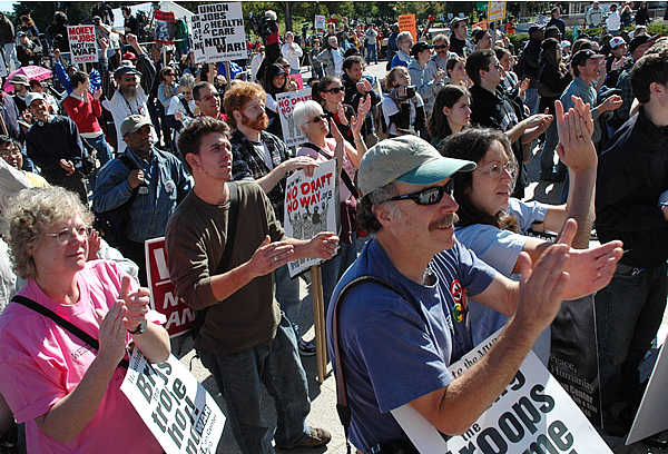 このMWMに対して、日本の連合にあたる、既成のナショナルセンターであるAFL―CIO(米労働総同盟―産別会議)は、賛同と動員とカンパを禁止する指令を下ろした。だが、その妨害と敵対をはね返して、各産別や地域組織の内部からランク・アンド・ファイル(一般組合員)の決起がかちとられたのである。大統領選挙に際して「ケリー支持」を推進するAFL―CIOと、「ブッシュ打倒! ケリーもノー!」をめざしたILWUローカル10―MWMとの階級的分岐が明確になり、反動的制動を打破する巨大な流動が開始されたのである。