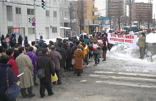 すでに05年の決戦は、教育労働者を先頭とした「日の丸・君が代」強制拒否、教育基本法改悪阻止の闘いとして、1・7札幌全国教研集会をめぐる闘いで火ぶたを切った。