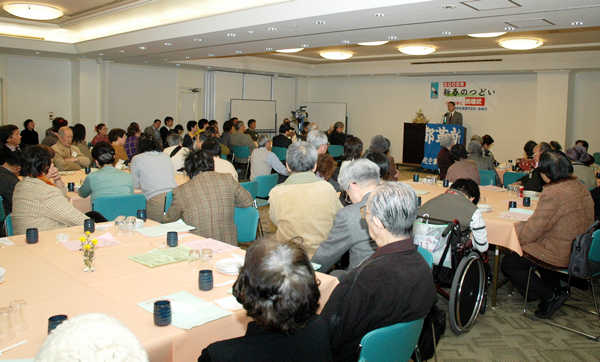 | 都政を革新する会の新春のつどいが盛大に開かれ、長谷川英憲代表が都議選に向けて必勝の決意を語った(1月23日 杉並)=記事へ |