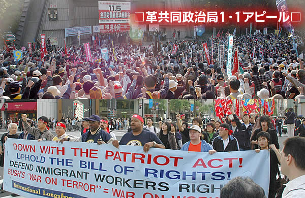 帝国主義ブルジョアジーが「労組絶滅」を叫んで襲いかかっているのは、労働者階級の怒りの爆発に恐怖しているからだ。だが既成労組幹部はその前に次々と全面降伏し、戦争前夜の果てしない裏切りの道を歩んでいる。この労働運動の現状を現場労働者の職場からの大決起で革命的にぬりかえ、教労・国鉄・全逓・自治体の4大産別を先頭に、労働組合を6千万労働者の手に奪い返す闘いに立とう。闘う3労組が呼びかける昨秋11・5集会は、その檄(げき)を全国・全世界に発した。この道を断固として突き進む中にプロレタリア革命勝利への道がある。