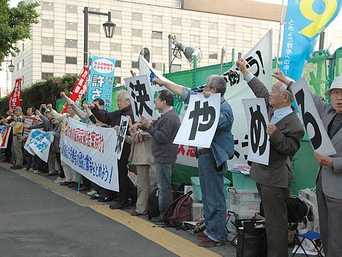 この日は朝から、破防法・組対法に反対する共同行動が国会前座り込みや集会を行った。集会で発言した関西の教育労働者は「日教組本部のていたらくは本当に許せない。現場から改悪教基法と対決して『日の丸・君が代』強制に対する不起立闘争も闘っている。この力が改憲を阻止する力だ。青年労働者が社会の根本的な変革を求めて闘っていることに連帯し、団結を打ち固め革命をやって戦争を阻止しよう」と確信をもって訴えた。