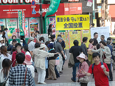 5月9日、国民投票法案の参院での採決情勢が緊迫する中、反戦共同行動委員会の主催する国会抗議闘争が闘われた。