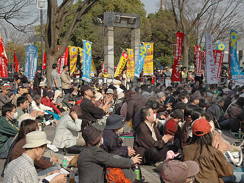 3月16日、全世界でイラク反戦闘争が闘われた。東京では代々木公園B地区でのワーカーズアクション実行委主催「イラク反戦!全世界一斉デモ」に1350人が結集。さらに420人が参加した大阪を始め、全国17都市で一斉行動が闘われた(詳報次号)。資本と非和解で闘い、ストで職場を停止させ、街頭デモで国家権力と激突する――3・16集会は、階級的労働運動が時代の最前線に躍り出て革命へ進撃する決定的な合図となった。動労千葉派が先頭でそれを切り開いた。