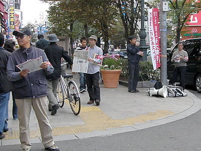 北海道では、サミット粉砕決戦の地平を引き継ぎ、札幌・室蘭の2カ所で街宣行動に決起した。