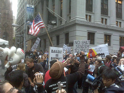 ふざけるな! ブッシュや資本家どもには怒り以外にない。「救済ではなく、やつらを監獄にぶち込め」「ウォール街と戦争にこれ以上金をつぎ込むな!」――アメリカの労働者はこう叫んで全米デモに立ち上がっている!