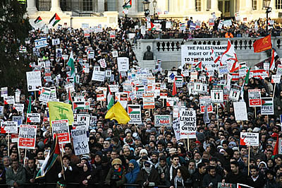 ロンドンでは12月28日、イスラエル大使館前に1000人のデモ隊が押しかけ、抗議の投石を行った。このほかヨーロッパ、中東と全世界で闘いが起きている。