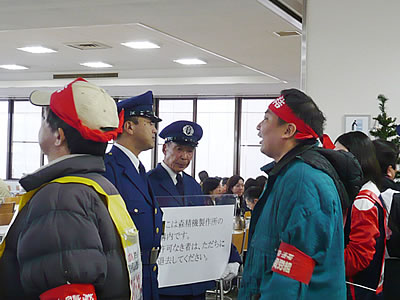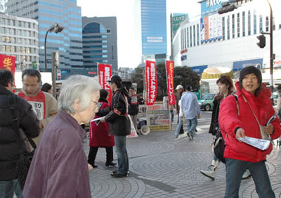 夕方、クリスマスでごったがえす新潟駅万代口に、「早期解決をめざす12・7集会」で4者4団体を徹底弾劾した国労現場組合員や交流センターの仲間が結集して座り込みとビラまきが行われた。また「派遣・期間切り」に「森精機のようにストで闘おう」と呼びかけるビラまきを連日行っている新潟地域一般ユニオンが合流した。