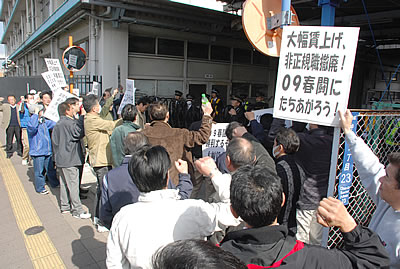 東京北部の医療現場で闘う精研労組の仲間は「2・28ストを貫徹した。第2の動労千葉を目指している。資本救済の4者4団体派を打倒し09春闘を闘おう」と訴えた。関西合同労組技能育成センター分会の仲間は、「森精機で3波のストと2度の抗議闘争をぶち抜いた。全国ゼネストに発展する闘いだ」とアピールした。