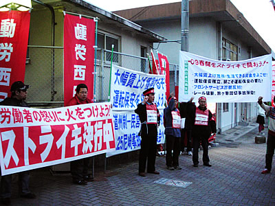 昨年12月28日、山陽本線の中野東−瀬野間でレール破断が起きた。作業中の触車死亡事故も多発している。2月23日には、五日市駅に隣接する鈴ケ峯踏切で死亡事故が発生した。安全は危機に瀕している。駅こそ運転保安の要だ。動労西日本は、フロントサービス診断の中止と駅への保安要員の配置などを求めてストライキを貫徹した。