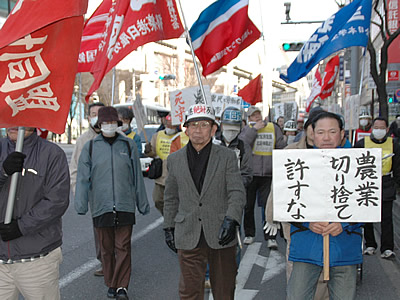 三里塚芝山連合空港反対同盟の北原鉱治事務局長は「農民が命の糧を生産し、労働者が機械を動かす。この大きな労働者・農民の連帯があれば、今の政治はいらない。搾取のない時代をつくろう」と、3・29全国集会への結集を訴えた。