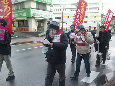 千曲ユニオン青年部先頭に春闘一日行動 長野労組交流センター M・K