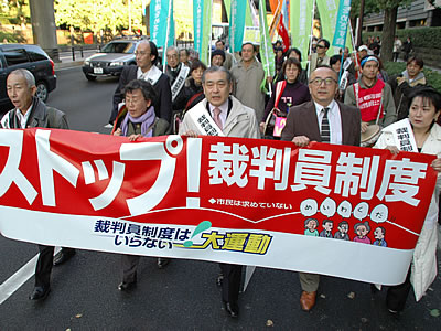 憲法と人権の日弁連をめざす会の森川文人弁護士は「いま最も暴力支配が露呈している場所は法政大学だ。ビラまき禁止の仮処分策動を粉砕する」「反戦は革命だ」と訴え、4・21の裁判員制度粉砕集会への参加を呼びかけた。