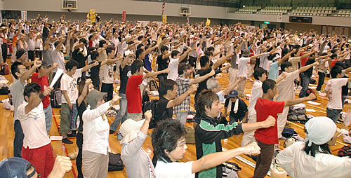 8月6日午後、「被爆64周年8・6ヒロシマ大行動」の集会が広島県立総合体育館小アリーナで開かれ、全国から1800人が大結集した。