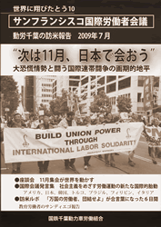 次にアメリカから、ILWU(国際港湾倉庫労組)ローカル34のホアン・デルポソさんが発言した。7月に開催されたサンフランシスコゼネスト75周年・国際労働者会議について報告し、オバマのプラハ演説を「核の独占を公然と宣言したもの」と断罪。「職場の団結を基礎とした国際連帯の力こそ、戦争を止め核廃絶の展望を切り開く。オバマ政権に対し、中東でのごう慢な行状を撤回するよう追及していく」と力強く語った。