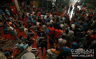 1、今日(8月6日)金属労組双龍自動車支部は「占拠ストライキ座り込み77日目、煙突高空籠城86日目、公権力全面投入18日目」を迎えた今、火薬庫と呼ばれる塗装工場の”大惨事”を防ぐために、悲壮な覚悟で最後の労資交渉を提案し、最終合意しました。しかし人を切る整理解雇、”死の行列”を結局防ぐことができませんでした。