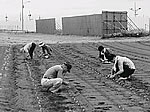 その畑で早速作業開始。市東さんと現闘の仲間とともに、収穫の終わったトウモロコシ畑の草刈り、セロリの苗植え、きゅうり畑の片付けなど、汗と土にまみれながら夕方まで作業をやりきりました。草刈りや苗植えの終わった畑を見ると爽快(そうかい)感でいっぱいです。