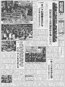 日本共産党や連合などが大宣伝するオバマ幻想を怒りをもって粉砕しよう。田母神を先兵とする日帝の核武装攻撃を打ち破ろう。