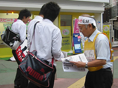 こうした中で日共の敵対がますます明白になりました。裁判員候補者に対して「裁判員を拒否して一緒に闘おう」と訴える私たちと対照的に、「裁判員の皆さん、がんばって、冤罪をなくして下さい」と言いながらビラを配るのが日共です。裁判員制度粉砕は改憲・戦争絶対反対の闘いです。あらゆる意味で今後ますます重大です。