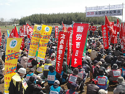 6月17日、改悪農地法が成立しました。これは戦後闘いとった農地改革の成果を根底から覆す攻撃です。農民から農地を奪い企業(資本)に引き渡す制度の開始であり、資本による農業からの徹底収奪です。300万農家を40万戸に激減させるこの攻撃は、道州制による360万自治体労働者解雇攻撃と同根です。