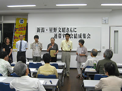 8月28日、全国で23番目の会「新潟・星野文昭さんに連帯する会」が結成された。県内から労働者・市民35人が集まり、新潟でも星野奪還の運動を力強く、根気強く進めていくことを誓った。