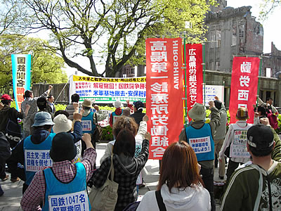 5月6日、8・6広島−8・9長崎反戦反核闘争全国統一実行委員会と北陸労組交流センターは、福井県敦賀市で高速増殖炉「もんじゅ」の運転再開阻止の闘いに決起した。この日、プルトニウム確保と自前の核武装の道をがむしゃらに進める鳩山民主党・連合政権は、ナトリウム火災事故で14年半も停止していたもんじゅを動かそうというのだ。絶対に許せない!
