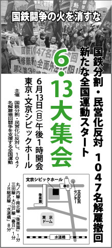 主催 国鉄分割・民営化に反対し、1047名解雇撤回闘争を支援する全国運動