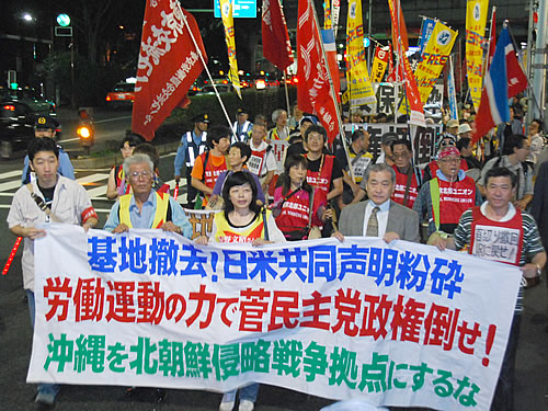 沖縄で菅があらめて「5・28日米合意」の履行と辺野古新基地建設強行を宣言し、橋下大阪府知事は「沖縄県民に県内移設を受け入れてもらうために関西への部分移設を引き受けたい」などと反動の旗振り役として登場しています。私たちは菅や橋下を弾劾し、開始された国鉄全国運動の発展にこそ勝利の展望があることを訴えました。
