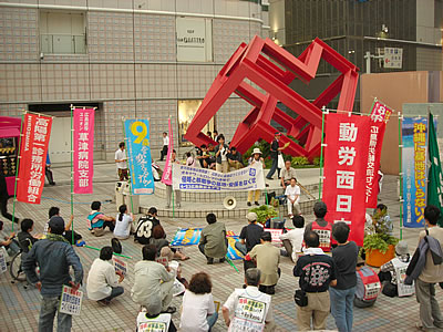 20日には愛知の金山総合駅と三重の四日市で、東海合同労組を中心に百万人署名運動の仲間、労組交流センターの仲間も結集して菅新政権に怒りの声を上げました。沖縄基地撤去の署名は100筆を超え、「解雇自由」や「核武装も侵略も自由」という戦争を必要とする社会をひっくり返そうという力がみなぎった街頭行動でした。