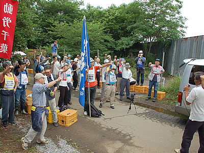 萩原進事務局次長は、「このせっぱ詰まったやり口に、敵のあせりが表れている。第3誘導路認可、現闘本部撤去、市東さんの農地強奪と続く一連の攻撃との闘いがこうして始まったのだ。われわれに悲壮感はなく、いよいよこれからが反撃だ。この暴挙には必ず廃港の二文字でこたえてやろう」と力強く訴えた。さらに動労千葉の後藤俊哉さんが労農連帯を強めて闘う決意を表した。