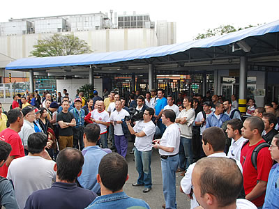 (写真 【右】「廃港にするぞ!」とシュプレヒコール 【左】午前5時半、封鎖作業を弾劾)
