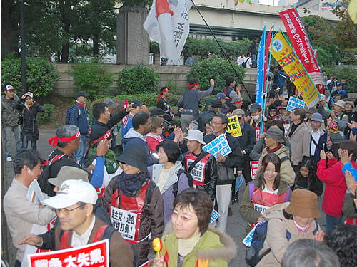 APEC粉砕闘争では、支配階級に対する怒りを持った強力な隊列として支配階級のトップたちの眼前に登場することができ、それだけで満足なものでした。しかし、右の側からも「菅政権打倒」を叫ぶファシストの集団も同様に集会・デモを行っています。