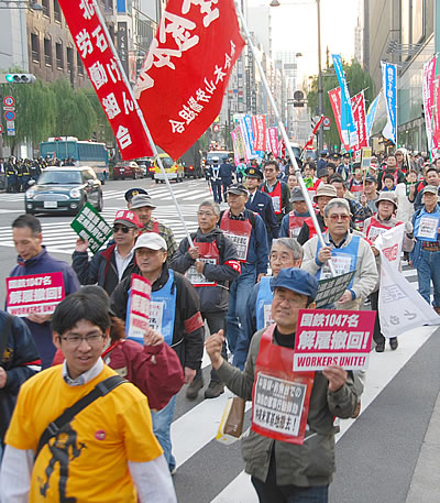 日本経団連は、春闘を「春の労使パートナーシップ」と呼ぶことを提唱し始めた。「労使が一体となって国際競争に打ち勝つための建設的な議論の場とする」とうそぶいている(17日に出された経営労働政策委員会報告)。これは4・9政治和解と11・23朝鮮侵略戦争情勢に対応した、“資本と対立することはやめよう、国際競争力強化に労資で取り組もう”という戦争前夜−戦時下の「階級平和」の呼びかけだ。こういうものを4・9反革命が引き出した。“全国運動をつぶせ!”とブルジョアジーは絶叫しているのである。