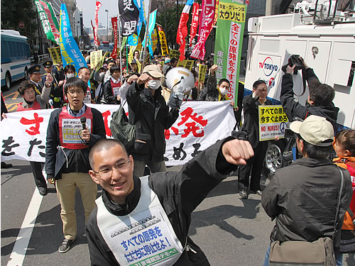 3月31日、「ただちにすべての原発を廃止しろ」を掲げた東京電力抗議行動に150人の労働者・学生・農民が全学連を先頭に立ち上がった。「安全・クリーンなエネルギー」などとウソで塗り固め日本中を放射能まみれにする東電資本と原子力安全・保安院、菅政権を徹底弾劾する怒りのデモをたたきつけた。広島大学や被災地・東北大学の学生もかけつけた。