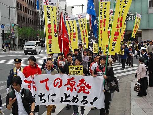 このとき、連合は、「国難打開」を叫んで、春闘を休戦し、メーデーも「復興支援集会」にねじ曲げ、挙国一致体制にのめりこんでいます。労使一体で原発を推進してきた連合は、原発事故にひたすら沈黙を決め込んでいます。