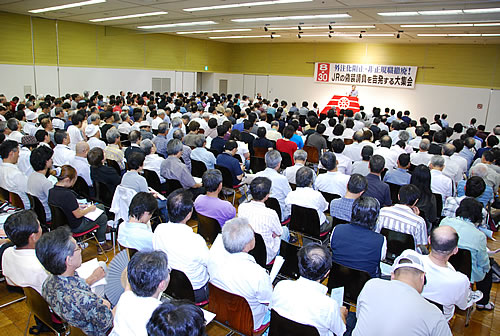 動労千葉が主催した「JRの偽装請負を告発する大集会」が8月30日、すみだ産業会館で開かれた。動労千葉の田中康宏委員長はこの場で「今日の集会は動労千葉の戦闘宣言の場だ。今日を期していつでもストライキに立てる闘争態勢に入って欲しい」と述べ、京葉車両センターでの構内運転業務一部外注化を組織の総力をあげて阻止することを宣言した。