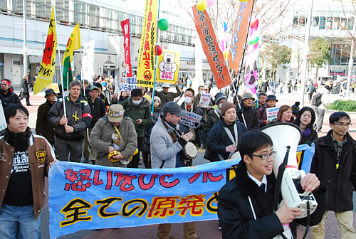 さらに午後3時からは、ポートサイド公園で首都圏反原発連合主催の集会とデモが行われた。この行動は「脱原発世界会議」の一環として取り組まれ、神奈川・東電デモ実行委も合流し、4500人が参加した。