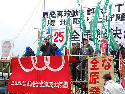 3月25日、三里塚芝山連合空港反対同盟が主催する三里塚全国総決起集会が開かれた。集会は、@福島と連帯し原発再稼働を阻止する、A市東孝雄さんの農地を守る、という二つの闘いが結合した総決起の場になった。(7面に関連記事)