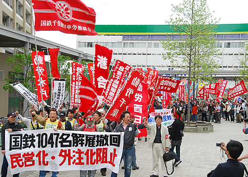 この破綻した資本主義・新自由主義の最後の救済者となっているのが、腐敗した組合幹部が牛耳る労働組合−連合だ。「国鉄? 連合? 私には関係ない」――そうではない。この構造の中で労働者が支配され、生活と権利が奪われている現実があるのだ。民主党・野田がその政権発足にあたり、最初にあいさつに行ったのが連合だ。連合は、野田政権の原発再稼働と被曝労働強制や消費増税、戦争発動、非正規職化・外注化の攻撃を自ら徹底的に推進している。