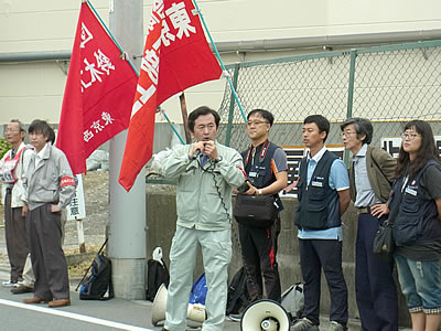 25日朝、KEC労働者は板橋区浮間舟渡で鈴木コンクリート工業分会の社前闘争に決起した。