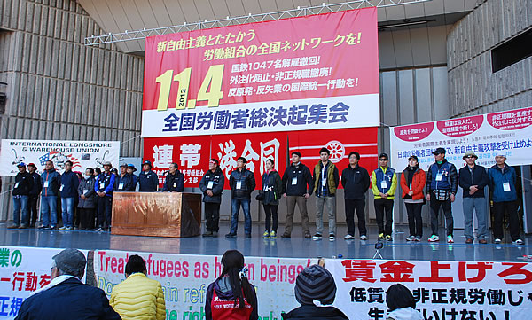 最後に港合同の中村吉政副委員長が、「混迷する政治情勢の中、われわれ自身が働く者の権利を守り、職場・地域で先頭に立ち、非正規労働者の組織化に向けて奮闘しよう」と、参加者の一層の奮起を呼びかけた。