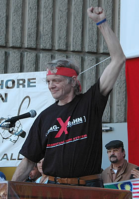 続いてアメリカの運輸労働者連帯委員会(TWSC)のスティーブ・ゼルツァーさんが、港湾労働の外注化・組合破壊攻撃と激しく闘うILWU(国際港湾倉庫労組)の3人の労働者とともに登壇した。そして、「労働者と労働組合に対する地球規模の攻撃は、世界の労働者の国際的共同行動でこそ打ち破ることができる」と訴えた。