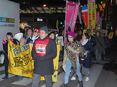(写真 12月13日のNAZEN杉並のデモ。衆院選を戦う山本太郎さんの阿佐ケ谷駅前街宣に合流した。15日に始まる「原子力安全福島閣僚会議」にも抗議)