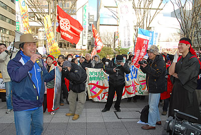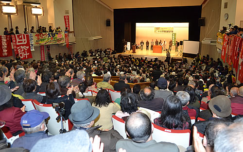 メッセージ紹介の後、福島からのアピールが行われた。浪江町・希望の牧場代表の吉沢正巳さんは「今年こそ勝負の年だ。原発の時代をのりこえよう。再稼働阻止へ体を張って闘う。みんなで頑張ろう!」と原発への怒りの鬼となり叫んだ。
