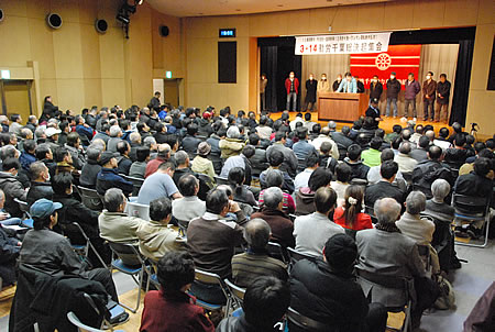 全国労働組合交流センターは3月9〜10日、福島市内で第20回定期全国総会を開いた。3・11反原発福島行動の直前に行われた今回の総会は、労働者階級の指導部として労組交流センターを打ち立てる歴史的宣言を発した。階級的労働運動の実践の中から労働者階級の党を建設するという方針が確認され、プロレタリア革命に向けての重要な意思一致の場になった。