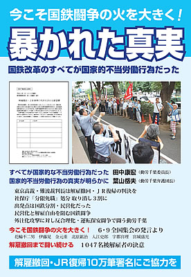 国鉄闘争全国運動が「解雇撤回・JR復帰」10万筆署名達成へ新しいパンフレット「今こそ国鉄闘争の火を大きく!/暴かれた真実」を発行した。