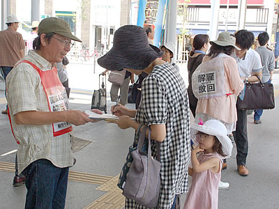 15日には「8・15労働者・市民のつどい」を前に、JR中野駅北口で署名集めが行われた。酷暑の中、1時間で百筆を超える署名が集まった(写真)。