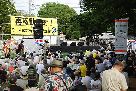 9月14日、亀戸中央公園で開かれた「さようなら原発大集会」で、三里塚産直の会はブースを借りて三里塚野菜の即売を行った。